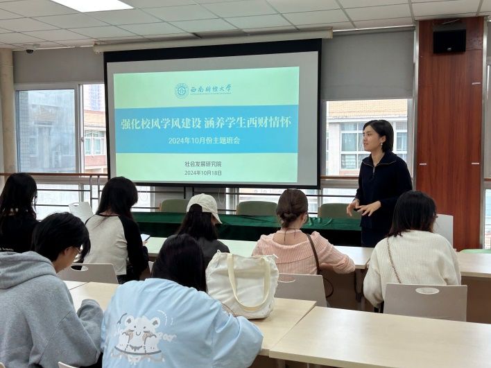 围绕“强化校风学风建设,涵养学生西财情怀”的主题,在通博楼A509成功举办了10月的班会活动。此次班会旨在通过深化校风学风建设,进一步提升杏吧探花