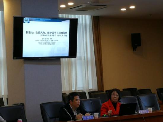 宏远楼109室作了题为“抗逆力:生活风险、保护因子与应对策略――以城市流动儿童社会工作实务为例”的主题讲座。 讲座中,彭华民教授把理论与实际项目相结合,深入浅出的分析抗逆力在人们日常生活中起到的重要作用,特别是在儿童时期,抗逆力的形成尤为重要,并解答了有同学提出抗逆力如何应用到社会工作实务中等问题。讲座的最后彭教授勉励同学们学好理论知识,做好实习工作,为将来的社会工作实务添砖加瓦。