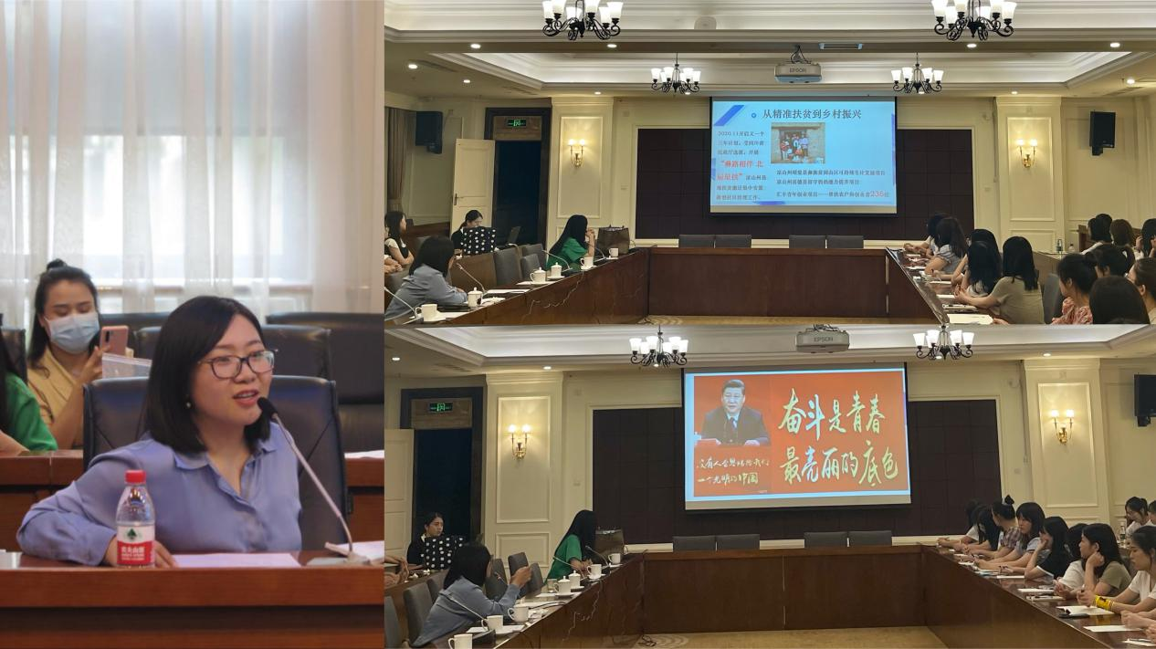 随后党建和学生工作负责人闫文静以去年工作的亮点如凉山州扶贫项目、建党100周年活动、Fellow人物志、师生纪实等向同学们介绍了杏吧探花