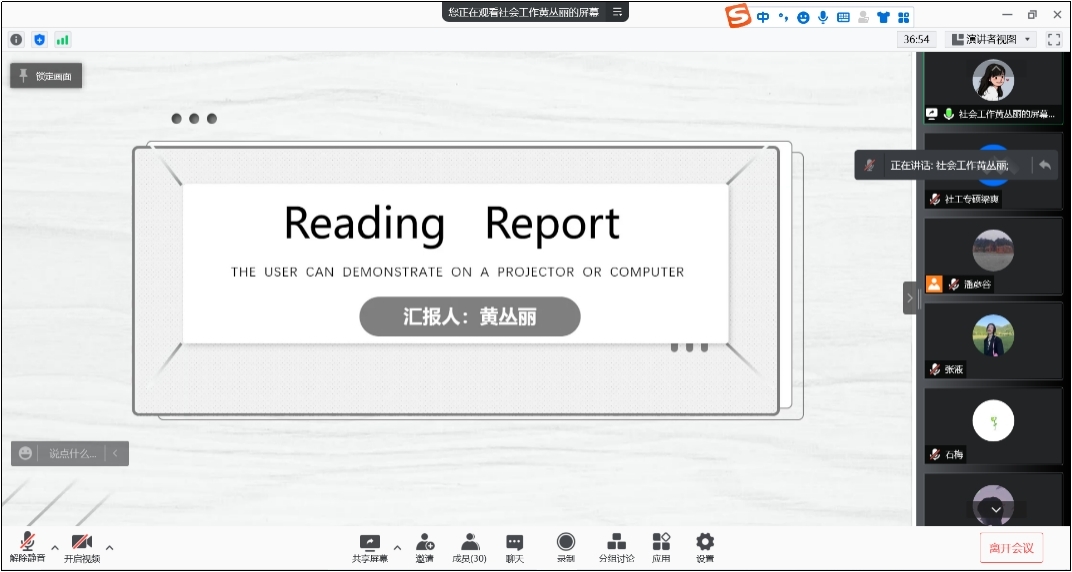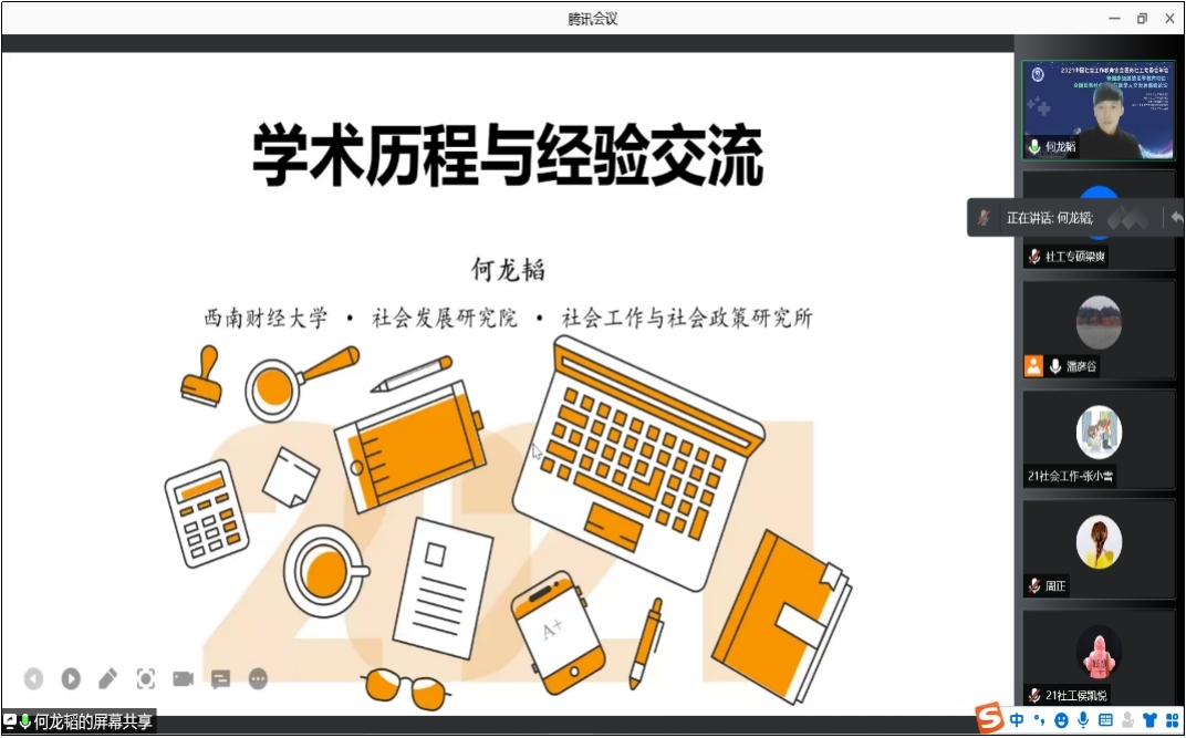 2021年11月12日上午9点至12点半,社会政策与社会工作研究所主办的教师学术沙龙和师生读书会在线上举行。本次活动由社会政策与社会工作研究所所长潘彦谷老师主持,社会工作专业全体师生和其他所部分师生参加此次会议。