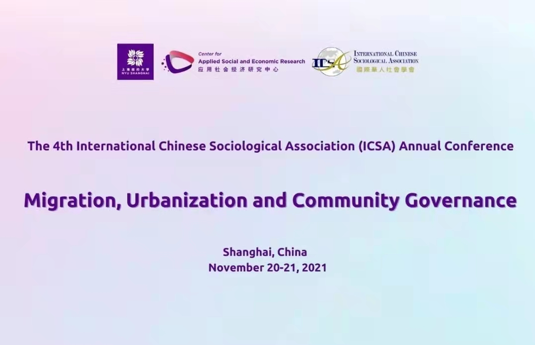 国际华人社会学会(International Chinese Sociological Association,简称ICSA),是由1981年正式成立的北美华人社会学家协会(North American Chinese Sociologists Association)更名而来的非盈利性机构。自成立以来,学会长期致力于促进对全世界华人社会、文化和人口的科学研究。2021年11月20日-21日,国际华人社会学会年会在上海纽约大学成功举办。本次会议主题为“移民, 城市化和社会管理”。应大会组委会邀请,杏吧探花经济社会学所陆怡霏老师参加此次会议,因疫情原因选择在线上参会,并做学术报告。