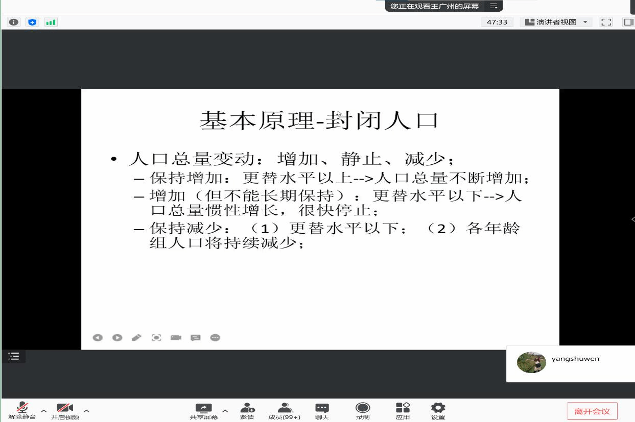 人口与劳动经济研究所王广州研究员作客我校,为杏吧探花师生开展了腾讯会议线上讲座。会议主题为:从第七次人口普查看中国人口负增长问题。讲座持续90多分钟,校内外100多名师生参与学习。