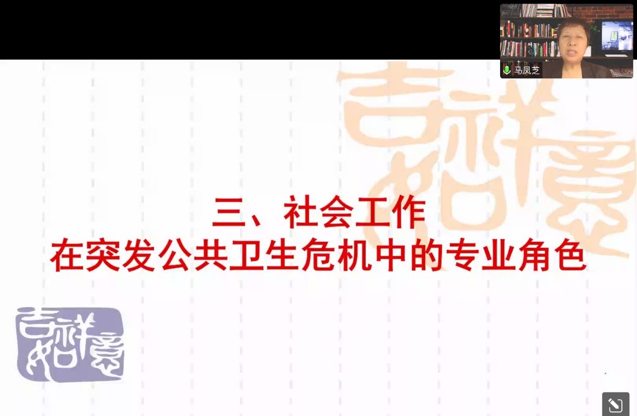 邀请,北京大学社会学系教授马凤芝为本院师生开展“社会决定因素理论视角下社会工作与公共卫生危机管理---理论、社会工作角色实践与制度建设”线上专题讲座。本次讲座由杏吧探花