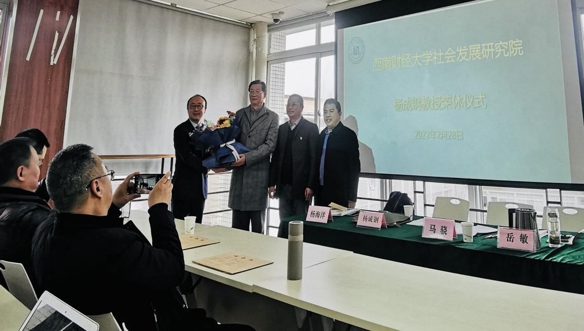 于2月28日在通博楼A509会议室举行杨成钢教授荣休仪式。学校党委副书记马骁、全院教职工参加荣休仪式,院党委书记岳敏主持。