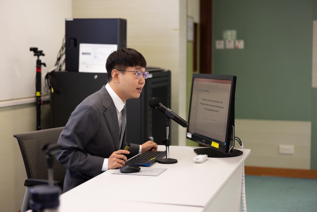 2023年11月23日上午,香港理工大学应用社会科学系举办了题为“Development of rural adolescences in mainland China”访问学生研讨会。研讨会由石丹理教授亲自主持,三位同学分别就《The effect of having a positive friend: A longitudinal network analysis of peer effects on positive youth development attributes》《The influence of parental control and positive youth development attributes on depression in rural adolescents: A 3-year longitudinal study in China》《The impact of family capital on positive youth development attributes of Chinese rural adolescents》进行了全英报告,介绍了他们研究的成果。报告反响热烈,香港理工大学师生积极提问交流,大家就数据收集、研究方法等进行了深入探讨,为三位同学下一步研究提出了宝贵的意见和建议。