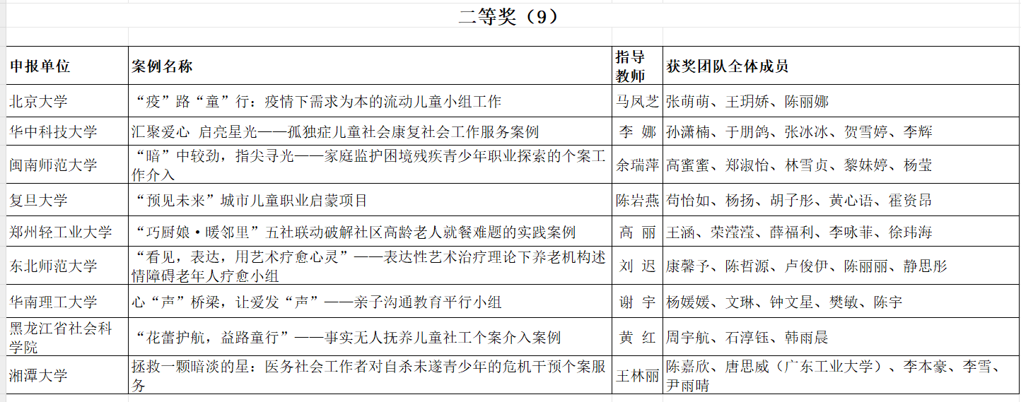 学科建设史,并指出:“本次案例大赛决赛既是一场专业比赛,也是一场经验交流会,在这次比赛中凝练的大量经验和形成的优秀案例,必将为我国社会工作专业人才培养和社会工作的推进产生积极的作用”。