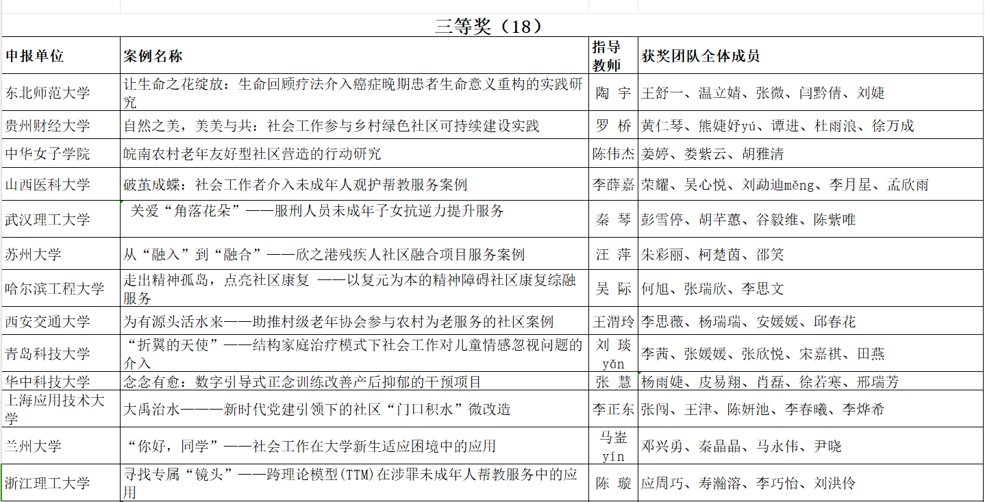 选送的参赛案例”花落有余香——基于知信行理论的高龄老人死亡教育个案社会工作”三个案例荣获特等奖。