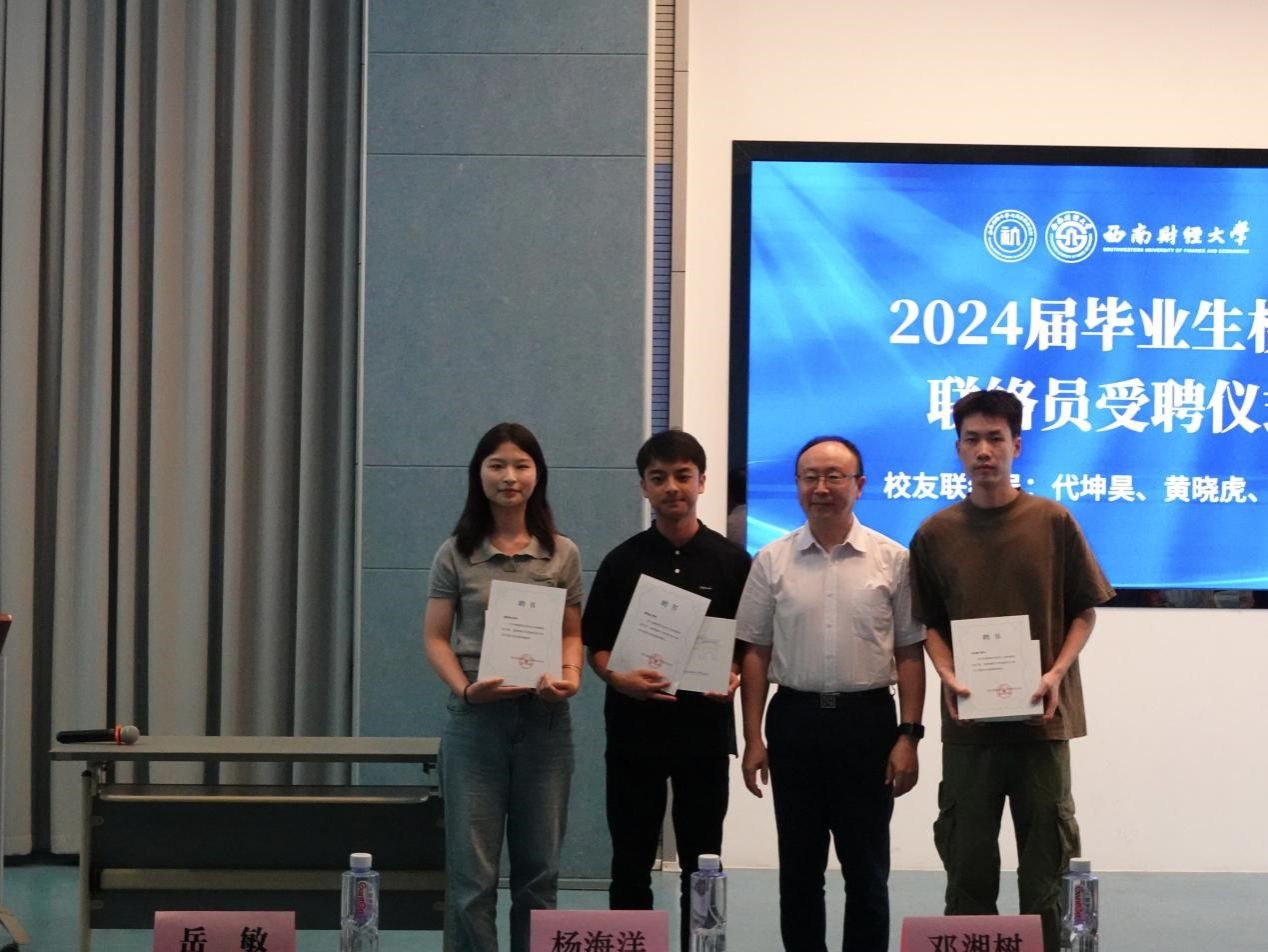 接下来,举行了毕业生校友联络员的聘任仪式,代坤昊、黄晓虎和黄熙岚三位同学被聘任为2024届毕业生校友联络员,肩负起建设和维护校友关系的重要使命。