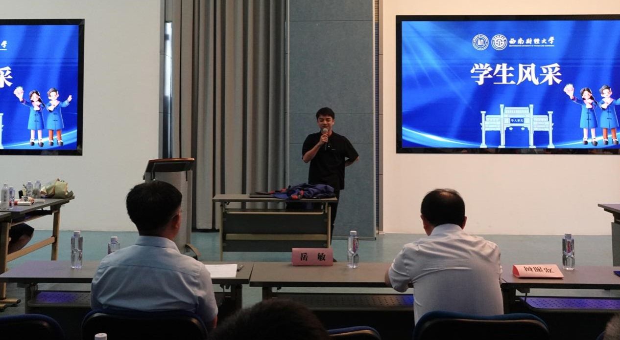 第二个流程为毕业生班级视频和学生风采展示。六个专业毕业生分别用视频的方式回顾了彼此研究生阶段中的美好回忆及学术、实践经历。2022级社会工作专业的班长黄晓虎为在场的师生献上了两首自己的原创歌曲,歌词中融入了对大学生活的回顾和对未来的展望,分享了自己读研期间作为一名学生干部的成长与思考,表达了这两年作为班长对同学们的感激,并感谢所有老师和同学们的支持和陪伴。