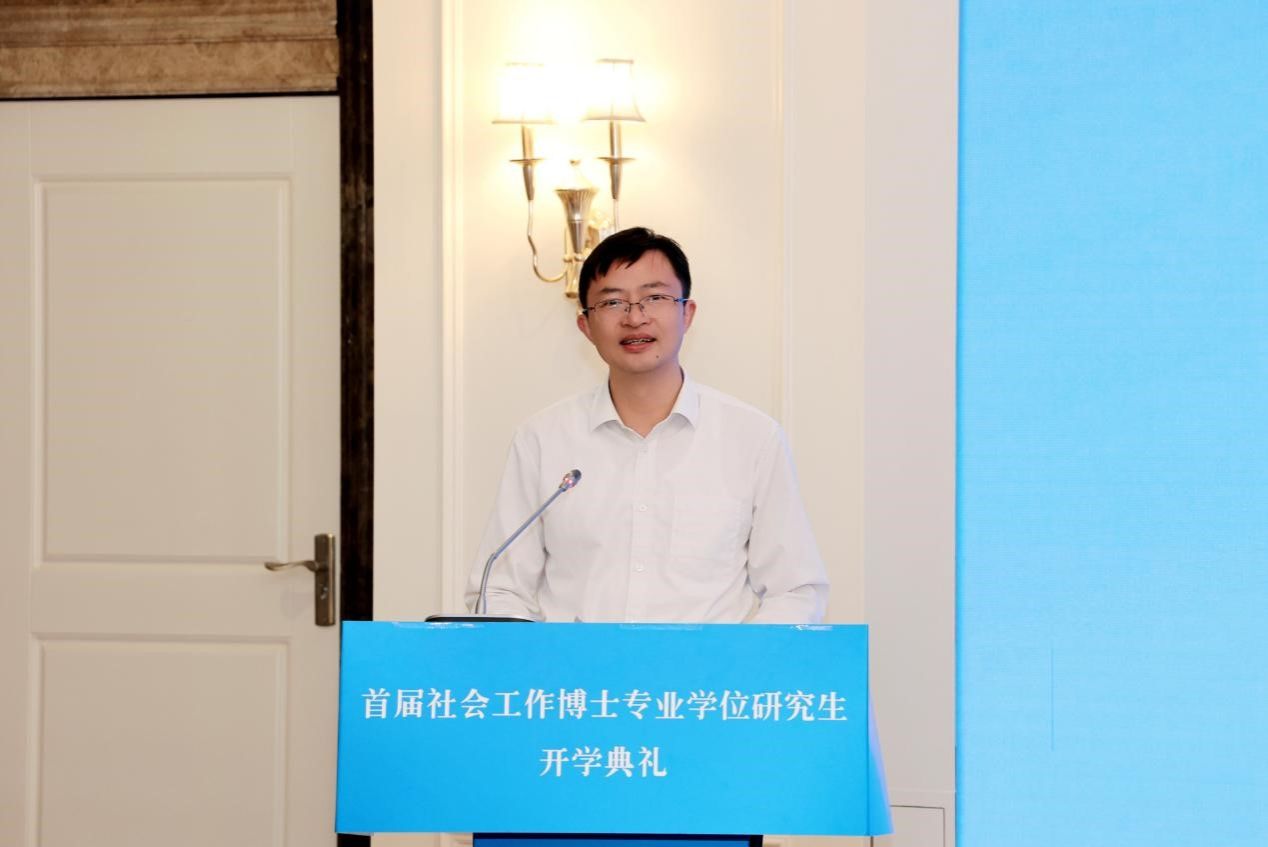 社会工作专业的建设成就,强调社会工作专业博士教育是衔接学术研究与社会服务实践的关键纽带。她对新生提出四点期待:一是扎根中国大地,怀有为民情怀,坚守以人为本、追求社会公平正义的专业价值观,将学术研究与国家发展、群众需求结合;二是追求学术卓越,勇攀理论高峰,依托优质资源培养批判性与创新思维,产出原创性成果,助力构建中国自主社工知识体系;三是注重实践创新,引领行业发展,融合理论与实务,成为理论研究者与实务指导者,推动政策及服务模式创新;四是秉持开放协作,弘扬团队精神,积极交流营造学术共同体氛围,相互扶持进步。
